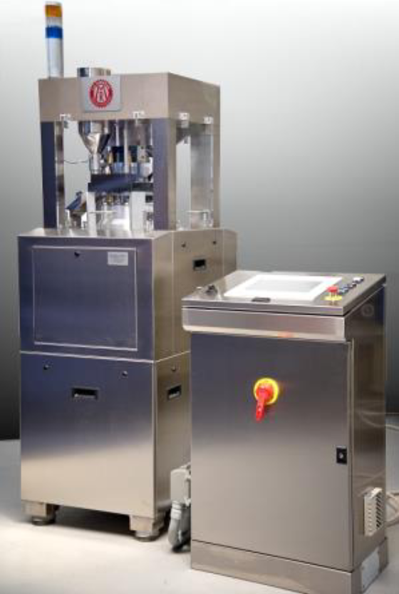 Disponible en dos versiones: con panel de control Set Press a bordo de la máquina o con panel separado Master Press. Esta última solución es útil cuando el cliente quiere separar el área de producción de tabletas del área de control. Ambas gestionan los ajustes de la prensa con las mismas funciones, tales como: autoaprendizaje de la fuerza de compresión en general y en los punzones, ajuste automático del peso de las tabletas mediante célula de carga, rechazo de tabletas fuera de tolerancia, limitación de la fuerza de compresión, impresión del informe de producción, almacenamiento de todas las configuraciones y ajustes de la máquina. Funciones exclusivas Master Press: Ordenador Touch Screen con monitor de 15”, cambio de idioma, monitorización de alarmas de máquina, monitorización y limitación de la fuerza de extracción configurada. Funciones exclusivas de Set Press: pantalla LCD retroiluminada, interfaz de computadora.